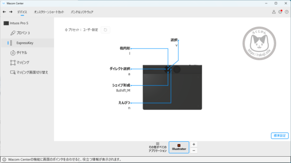 ペンの側面にあるボタンは3種類から選べ、ショートカットキーを設定できます◎